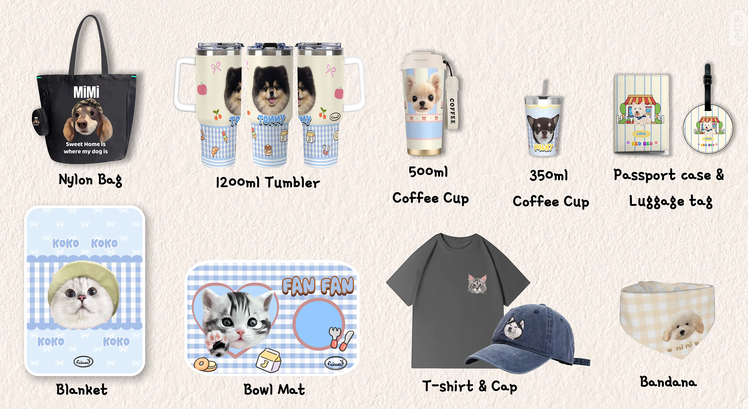 Our custom pet gifts are designed to bring your furry friend closer to your daily life — from drinkware to apparel, each piece is made with love. 💛