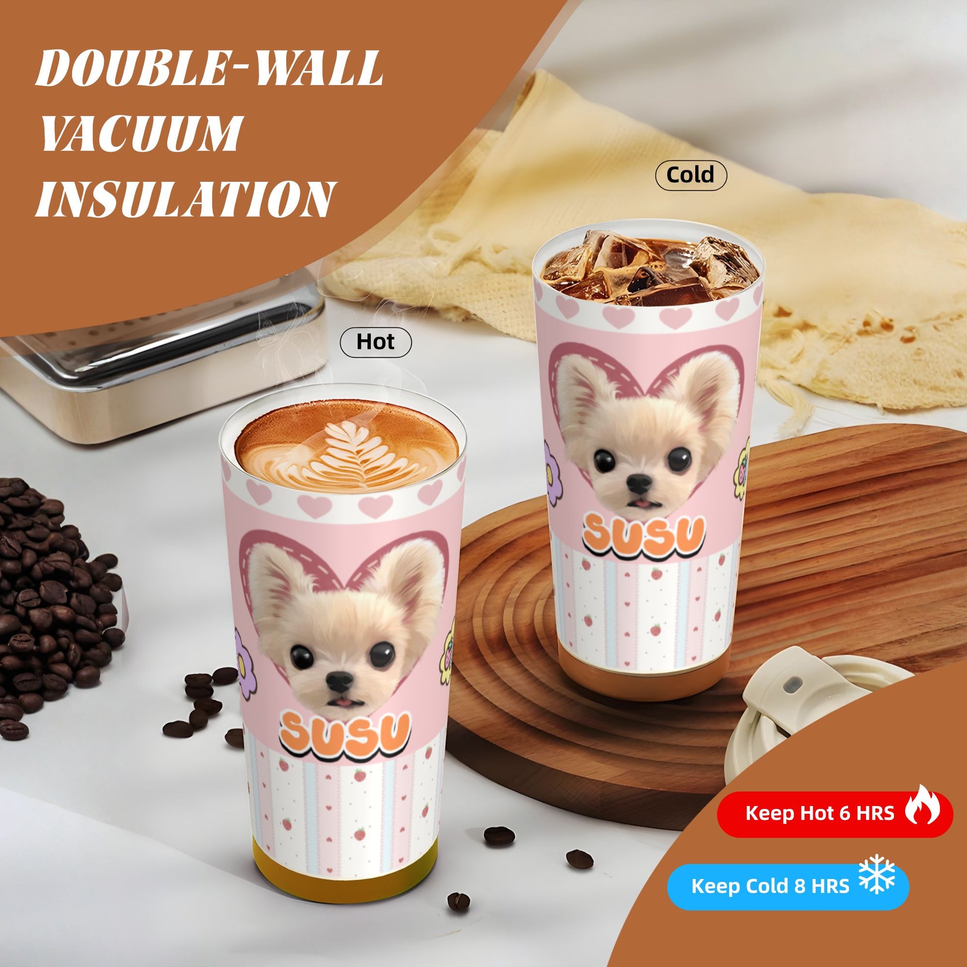 💡 This customized stainless coffee cup combines your pet’s portrait with everyday practicality — a perfect gift for pet lovers.